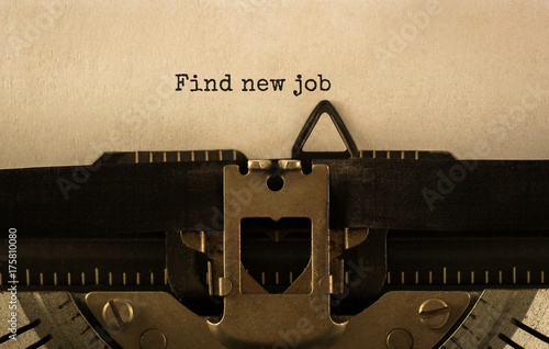 job, new, find, typewriter, text, writing, time, business, job, work, change, career, employee, employment, unemployment, unemployed, hire, occupation, search, opportunity, interview, seek, idled, people, background, solution, employer, vacancy, workplace, motivation, professional, finance, paper, concept, word, letter, retro, old, vintage, economy, management