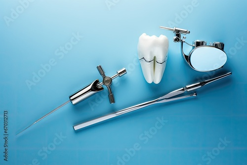 text space copy syringe tweezers hook mirror tools dentist treatment dental background blue instruments tooth health tool teeth care equipment medicals hygiene dentistry medicine clinic set