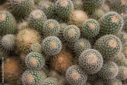 Texture background from thorny small cacti. Cactus top view