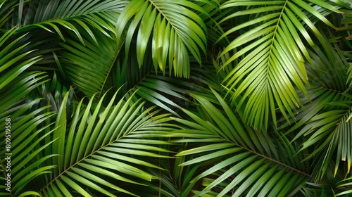 Texture of palm tree leaves with fresh green tropical foliage creating a vibrant pattern background