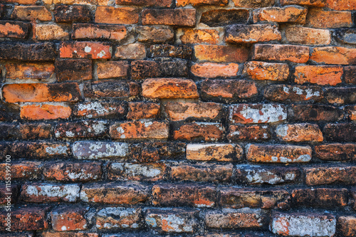 texture of the old antique brick wall of an ancient temple in Asia in close-up