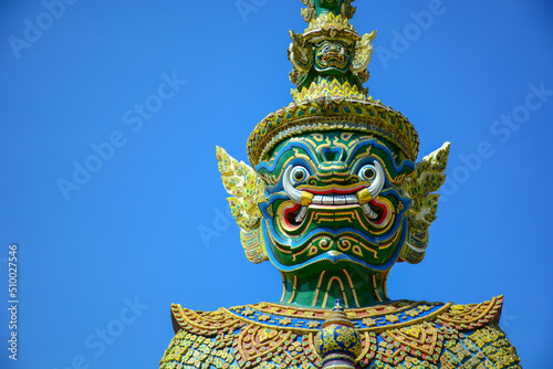 siam, temple, giant, statue, asia, thai, bangkok, sculpture, art, ancient, gold, architecture, buddhist, religion, culture, wat, travel, palace, face, guardian, daemon, guard, history, gold, decoration