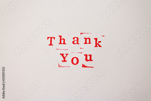 thank you, gratitude concept, beautiful minimalistic card, vintage red letter stamps on white background