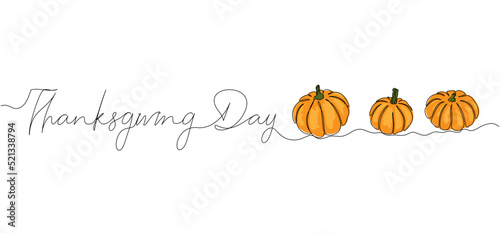 Thanksgiving Day continuous one line drawing background with pumpkins. Vector illustration for design poster, banner, flyer.