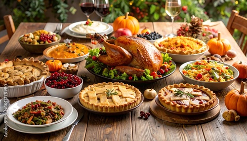 thanksgiving, feast, table, food, turkey, pie, stuffing, mashed, potato, cranberry, pumpkin, wine, autumn, harvest, dinner, autumn, colourful, delicious, abundant, epicure, roasted, vegetable, dish, platter, bowl, seasonal, celebration, family, gathering, home, wooden, rustic, plate, elegant, holiday, dinnerware, cranberry, gravy, fall, abundance, festive