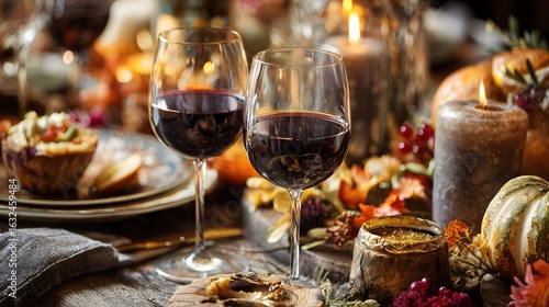 thanksgiving, wine, dinner, table setting, autumn, celebration, holiday, food, candle, fall, feast, goggles, red wine, epicure, rustic, elegant, decor, seasonal, gathering, delicious, drink, celebrate, table, pumpkin, arrangement, traditional, family, warm, cosy, romantic, light, wooden table, closeup, still life, leaf, grape, appetiser, hand-made, candlelight, harvest, glowing, refined, inviting, mood, festive, intimate, homemade, party