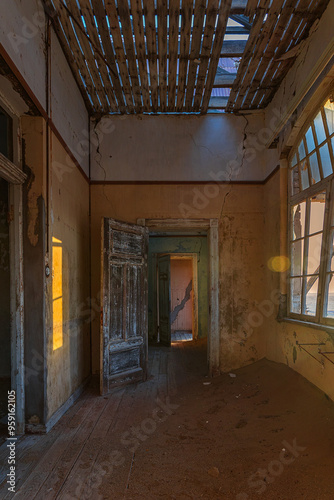 dawn, dusk, ghost, facades, dry, creepy, luxury home, atmospheric, landscape, desert, sunset, culture, african, window, historic, architecture, historical, decay, building, empty, abandoned, landmark, ruin, interior, inside, africa, exploration, town, old, history, mining