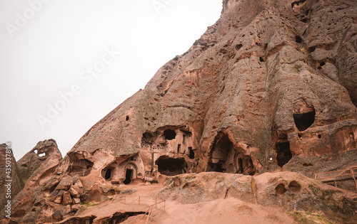 The ancient Selime Monastery (built into rocks) in Cappadocia, Turkey on a moody day