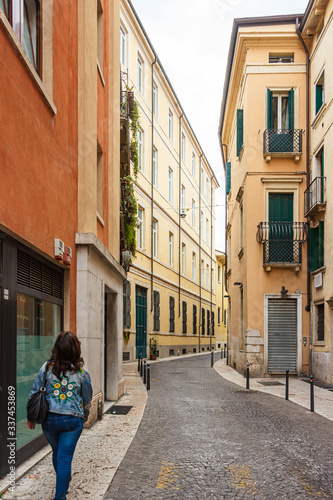 The architecture of the old part of the city of Verona in Italy. The Via Fatta street.