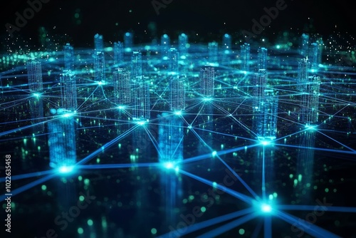 digital, asset, management, type, grid, holographic, node, blue, line, light, connection, access, organisation, system, network, flow, scalable, geometric, shape, precision, illustration, clean, vector, art, print, landscape, background, desktop, wallpaper
