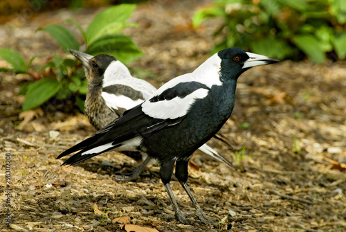 australian, magpie, medium, black, white, passerine, bird, native, australia, southern, new, guinea, christchurch, 2, australasia, bill, birdlife, bird, crow, eucalyptus, eat, feeding, eat, gum, leaf, leaf, omnivorous, outback, plumage, raven, share, sharing, songbird, swoop