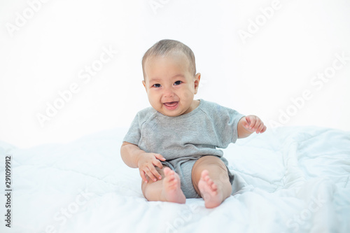 baby, happy, white, boy, children, cute, children, young, bed, caucasian, girl, bedchamber, home, little, blue, adorable, smiling, diaper, playing, infant, sunny, 1, childcare center, toy, blanket