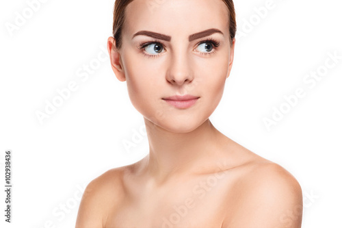 face, skin, girl, care, clean, beauty, beautiful, portrait, young, fresh, female, isolated, attractive, white, studio, health, woman, honed, skincare, closeup, healthy, eye, model, closeup, clear, fashion, view, pure, head, front view, brunette, natural, caucasian, adult, 1, close, spa, facial, soft, skincare, up, salon, concept, brown, posing, youth, cosmetic, make-up