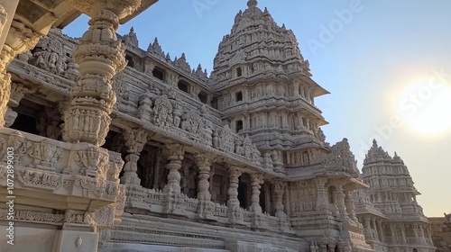 The beautifully carved pillars of the Adinath Temple in Ranakpur, emphasizing the stunning Jain architectural style and the intricate details in the craftsmanship