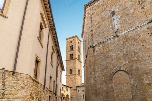 The Bell Tower of the Volterra Cathedral in the medieval hill town of Volterra, Italy.