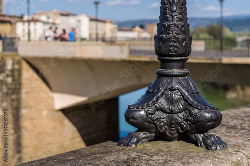lamp-post, ornate, lantern, leaf, leg, decorative, old, architecture, arno, art, footed, beautiful, bridge, building, embankment, facades, firenze, italy, lamp, landmark, post, river, street