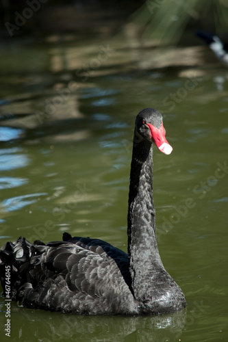 the black swan is swimming in the lake
