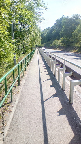 day, sun, bridge, wood, tree, road, paseo, green, trail, tree, way, grass, walk, outdoors, wood, summer