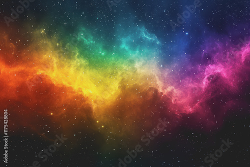 The bright night sky is a rainbow of colors blending perfectly. Stars twinkle in different shades.