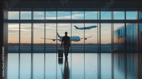 aerodrome, travel, businessman, suit, baggage, sunset, plane, terminal, silhouette, window, flying, journey, departure, adventure, freedom, fate, transportation, corporate, horizon, modern, glasses, movement, air travel, professional, waiting, exploration, vacation, connectivity, career, city landscape, sky