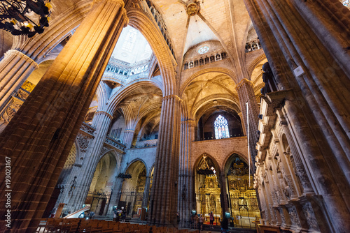 The Cathedral of the Holy cross and Saint Eulalia in the Gothic quarter of Barcelona