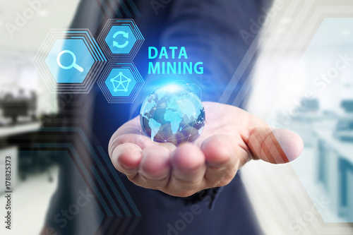 The concept of business, technology, the Internet and the network. A young entrepreneur working on a virtual screen of the future and sees the inscription: Data mining