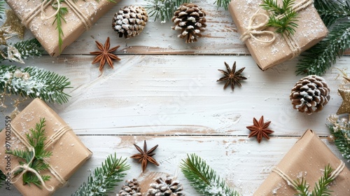 cosy, winter, gift, christmas, present, celebration, snow, holiday, wood, texture, festive, nature, table, decor, cheerful, pine, design, wrapping, party, background, greenery, rustic, natural, aesthetic, seasonal, tradition, arrangement, craft, premium