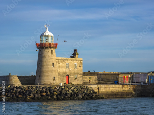 The current lighthouse in Ireland at noon against the blue sky