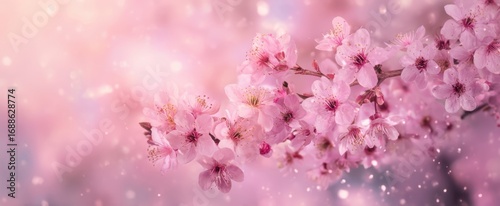 The delicate cherry blossom branch in a dreamy pink background of spring.