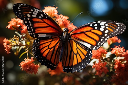The distinctive tiger-stripe patterns of a Monarch butterfly's wings come to life in this remarkable macro shot, highlighting its beauty.