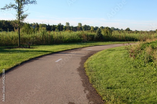 landscape, countryside, field, nature, path, paseo, sidewalk, tree, leaf, branch, grass, tall grass, weed, sky, blue skies, clear sky, sunny day, daytime, outside, outdoors