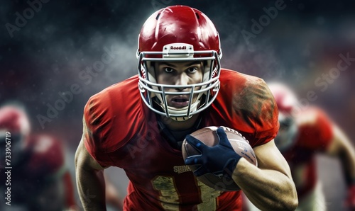 football, player, running, ball, painting, sport, action, athleticism, competition, movement, speed, agility, skill, determination, intensity, sharpened, precision, power, strength, team, victory, challenge, motion, excitement