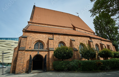 entry, gothic, catholic, church, architecture, religion, brick, building, door, portal, window, stone, cross, handle, wood, metal, lamp, city, poznan, poland, europa