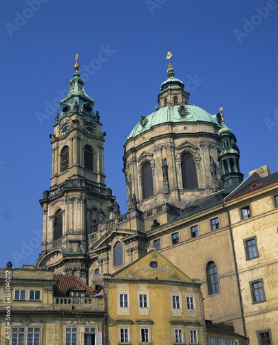 The exterior of St. Nicholas church in Prague, Czech Republic
