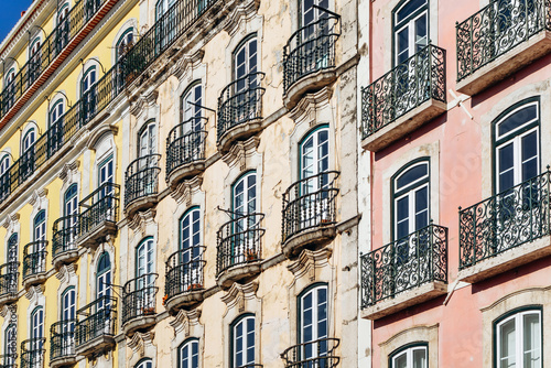 The facade of an old building in central Lisbon, showcasing historic charm and architectural details