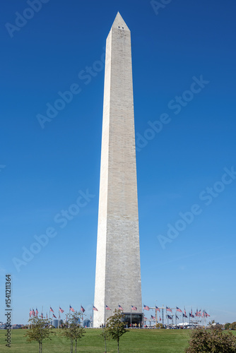 The famous Washington Monument with US-American flags around it