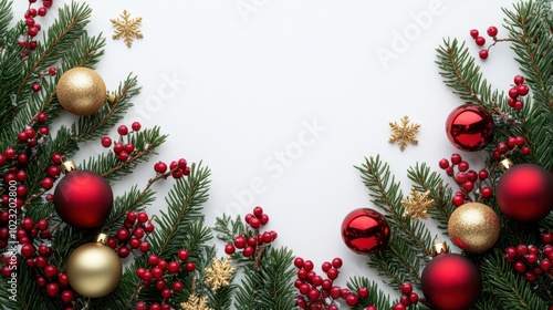 christmas, decoration, holiday, winter, greenery, ornament, festive, red, gold, pine, branch, berry, snowflake, celebration, seasonal, background, cheerful, tradition, joy, style, nature, warm, cosy, luxury, shiny, bright, design, layout, fresh, beautiful, arrangement