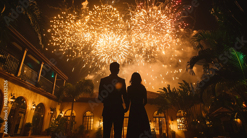 The fireworks are bright and cover the sky, suggesting a festive or celebratory event