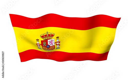 The flag of Spain. Official state symbol of the Kingdom of Spain. Concept: web, sports pages, language courses, travelling, design elements. 3d illustration