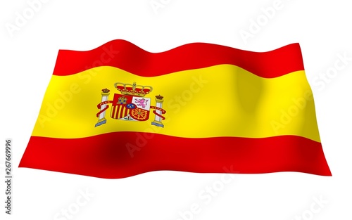 The flag of Spain. Official state symbol of the Kingdom of Spain. Concept: web, sports pages, language courses, travelling, design elements. 3d illustration