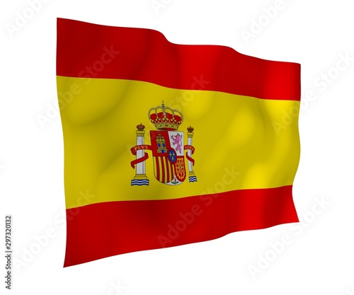 The flag of Spain. Official state symbol of the Kingdom of Spain. Concept: web, sports pages, language courses, travelling, design elements. 3d illustration
