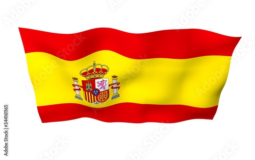 The flag of Spain. Official state symbol of the Kingdom of Spain. Concept: web, sports pages, language courses, travelling, design elements. 3d illustration