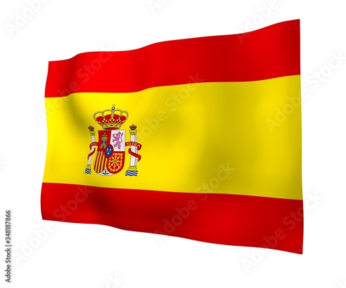 The flag of Spain. Official state symbol of the Kingdom of Spain. Concept: web, sports pages, language courses, travelling, design elements. 3d illustration