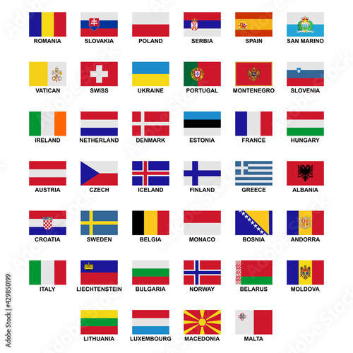 the flags of the countries in the continent of Europe icon set vector sign symbol