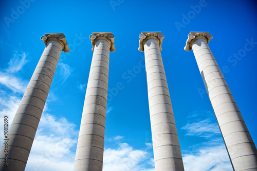 barcelona, catalonia, column, 4, ionic, architectural, architecture, catalan, landmark, spain, spanish, travel, in a row, looking up, pillar, structure, tourist attraction, replica, symbolic, cloud, historical, identical, day, closeup, famous place, europa, nobody, outdoors, matching, symbolism