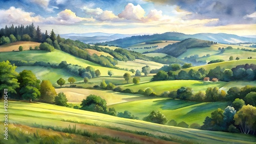 The Gentle Slopes of the Schw?bische Alb: A Watercolor Journey AI Generated