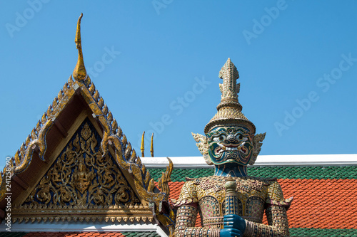 the giant in Temple of the Emerald Buddha (Wat pha kaew) with blue sky.