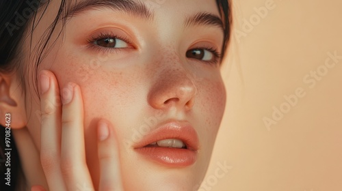 beauty, portrait, model, emotion, hand, fashion, happiness, wellness, youth, skin, glowing, face, make-up, calm, style, elegance, expression, female, serene, closeup, bright, natural, freckle, lip, artistic, freshness, soft, aesthetic, eye, trendy, skincare