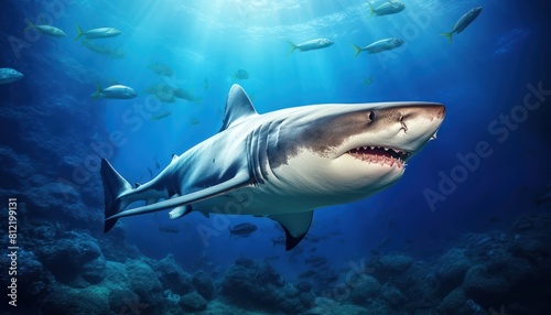 The great White Shark in the ocean, portrait of White shark hunting prey in the underwater