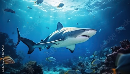 The great White Shark in the ocean, portrait of White shark hunting prey in the underwater